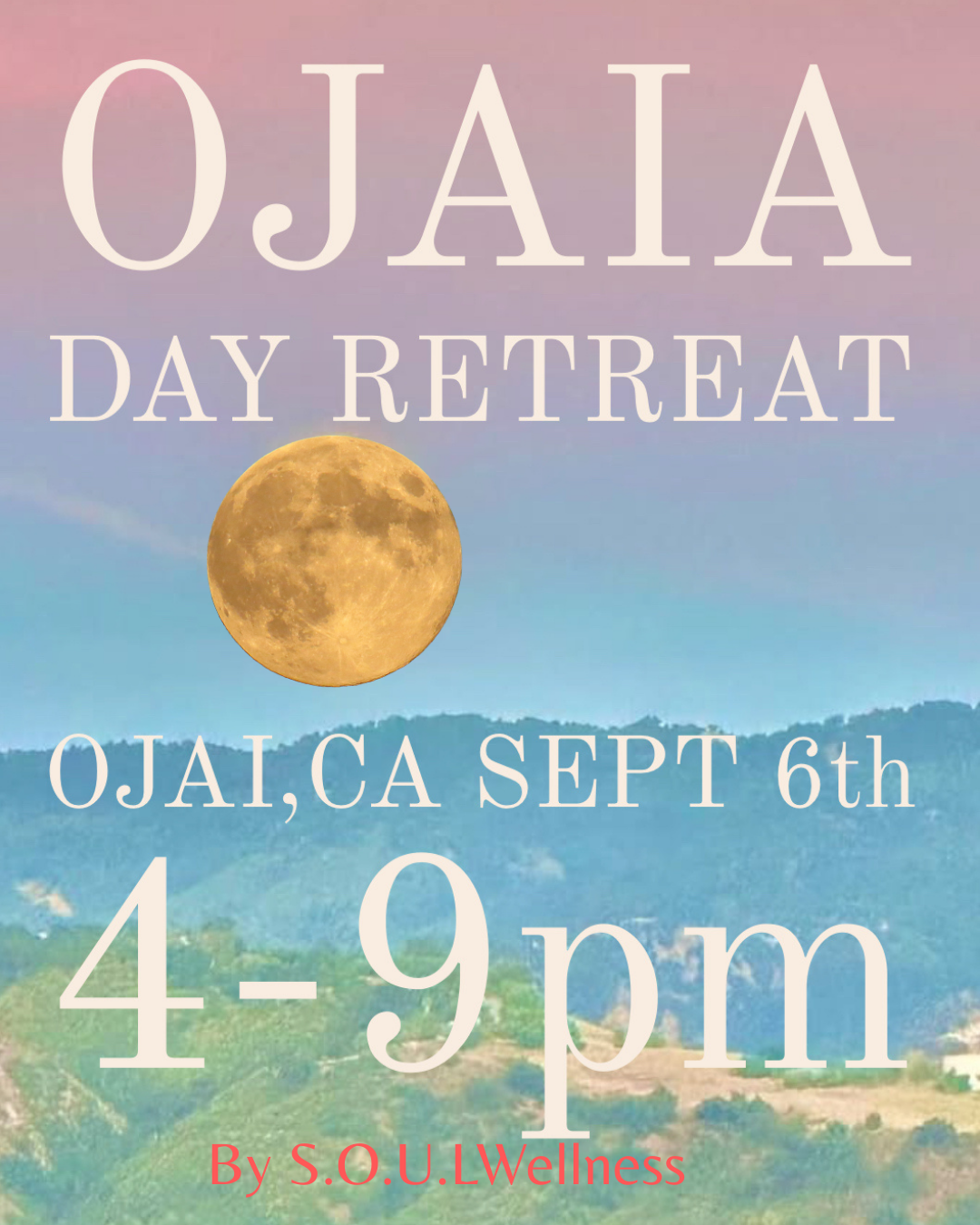 OJAIA, A DAY RETREAT BY S.O.U.L WELLNESS AND MARLENY ASQUITH MIND AND BODY ,DESIGN TO INSPIRE AND CONNECT TO THE ENERGY OF THE MOON AND THE SPIRIT OF OJAI NATIVE WOMEN, A SPIRIT OF STRENGTH, LOVE AND COMPASSION, GROUNDING WITH MOTHER NATURE TO CONNECT TO OUR INNER INSTINCT.